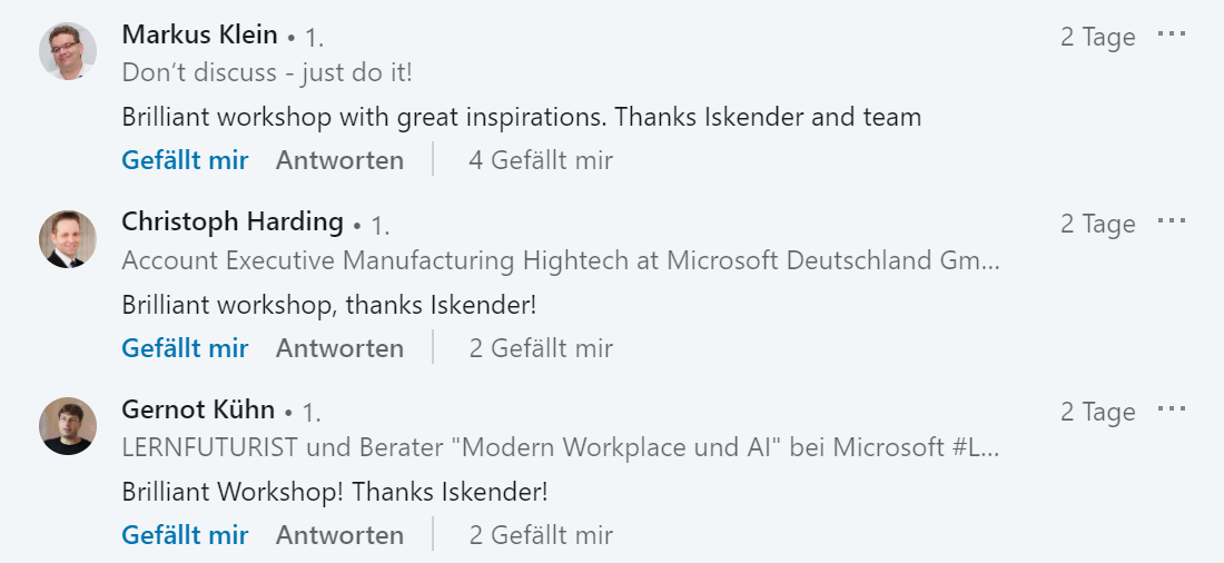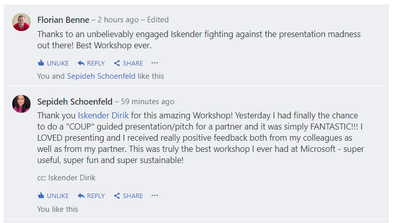 Impressions from training >100 Microsoft & LinkedIN team members with an NPS of 9.6 / 10